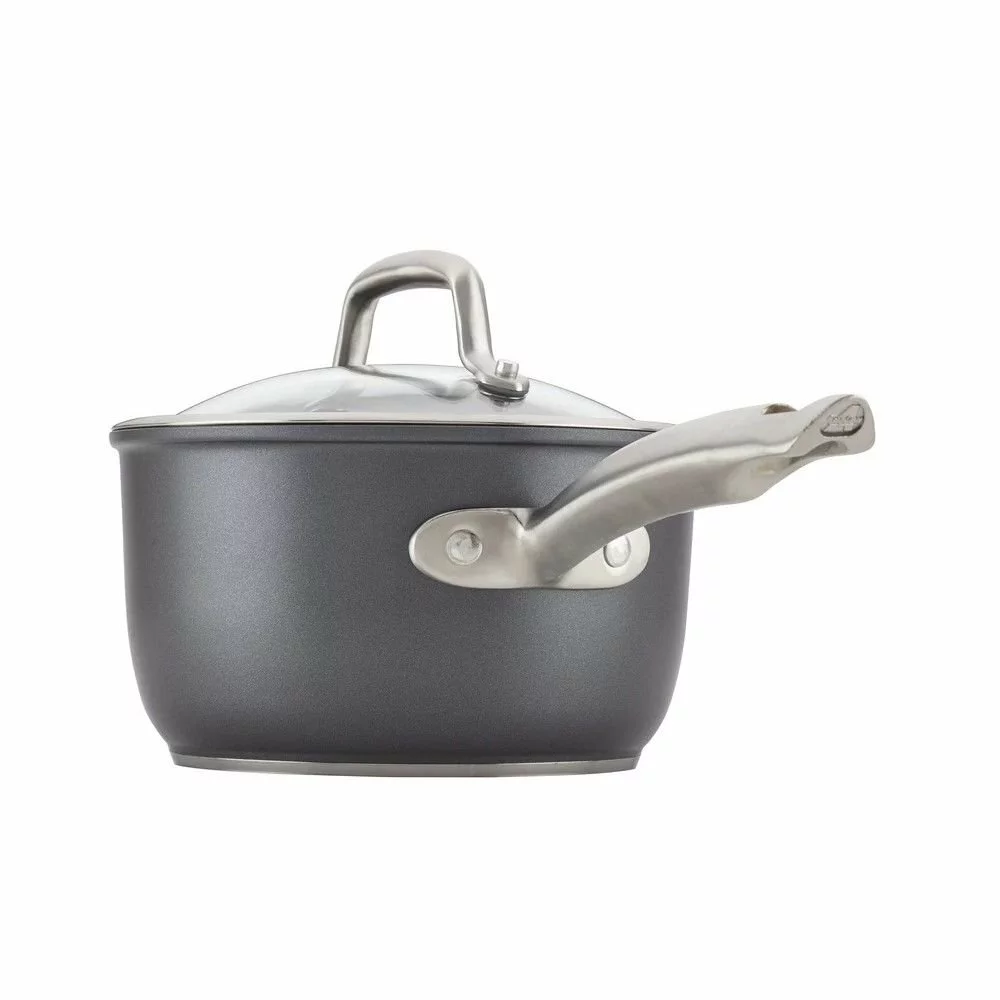 Honor your kitchen cabinets with cookware that will enhance your meal preparation for years to come using the Anolon Accolade 2.5-Quart Covered Saucepan. Offering the masterful cooking abilities of cast iron with the easy release and cleaning of nonstick, this hard-anodized aluminum skillet will quickly become your highest-ranking meal prep partner. Anolon’s Accolade Collection consists of forged cookware pieced with rim-to-rim stainless steel plates that lend to precise heat control, balanced weight, and unprecedented durability. The triple-layer nonstick adonized surface is as hard as sapphire, ensuring years of nonstick cooking without fading in performance. The tightly fitting glass lid features a stainless steel rim for added durability as well as a stainless steel handle for easy uncovering. Safe for use with all cooking surfaces, as well as dishwasher-safe, the Anolon Accolade 2.5-Quart Covered Saucepan will join your kitchen ready to tackle whatever recipe you throw its way!