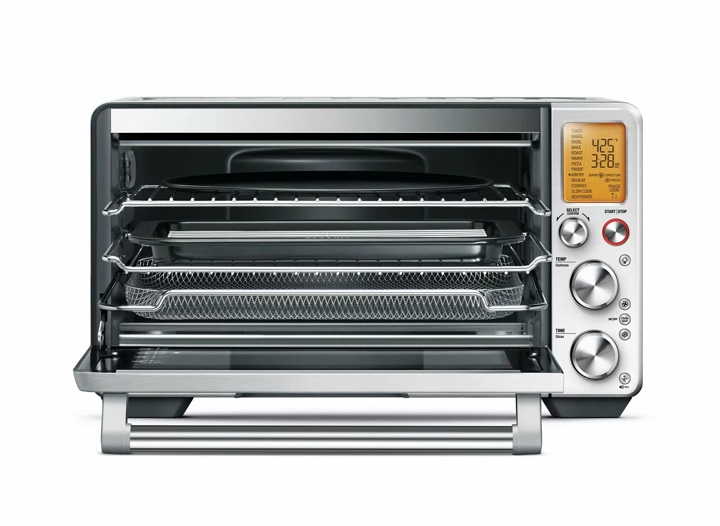 - Preset functions: Toast | Bagel | Broil | Bake | Roast | Warm | Pizza | Proof | Air Fry | Reheat | Cookies | Slow Cook | Dehydrate