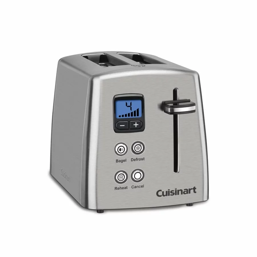 Beautiful design meets contemporary functionality with the Cuisinart Countdown Stainless Toaster. This stainless steel toaster is comes with large 1.5 inch slots which means Texas toast style breads are no match for this Cuisinart appliance. The Countdown Stainless Toaster by Cuisinart comes with 3 preset functions: Bagel, Defrost, and Reheat. These functions provide adjustable toasting technology that ensures uniform crispness. With a removable crumb tray, the Cuisinart Countdown Stainless Toaster keeps messes hidden and easy to dispose of. This stylish and sleek toaster will be a great countertop item for you and your family to enjoy for quick mornings on the go, or weekend breakfast gatherings!