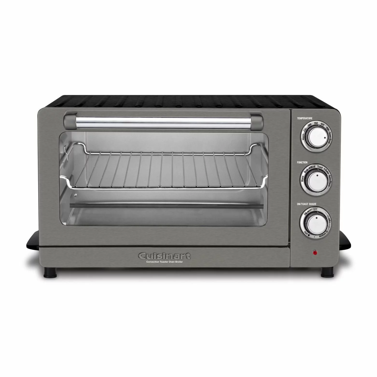 If the oven fits … it’s the one! One rack, so many possibilities – morning, lunch, or dinner, mealtime with the Black Stainless Convection Toaster Oven by Cuisinart gives you a convenient solution to quickly cook, and thoroughly, exactly what you feel like having without having to actually cook. Whether you feel like having frozen dinners, leftovers, or just a piece of bread, as long as it fits, the oven has the options to make it all into something more than just edible: it makes it simply delicious. Enough to be spaciously cozy, the inside of the toaster oven toasts, bakes, broils, or convection cooks around 6 pieces of toast or a whole 12” pizza at one time, not by any means sticking every drop of cheese or pieces of gooey dough to the sides or the bottom. This non-stick capability makes cleaning up after rather effortless, unlike before when you were up to your elbows in thick, hard-to-reach grease spots and other bits of food that just wouldn’t wipe off. In the process, don’t forget to empty the slide-out crumb tray from the convection oven that’s been collecting falling debris daily from an assortment of satisfying meals or snacks: an Italian bread, several bite-size supreme pizzas, or even a few of those strawberry pop tarts. Collect yourself and notice how tasty the flaky, lightly browned toast is swarmed with creamy butter on top just before finishing it off quickly before a long day of studying or working. More control is what you get with the Cuisinart Black Stainless Convection Toaster Oven … not one to lead you astray on the trail to a deliciously fulfilling meal.