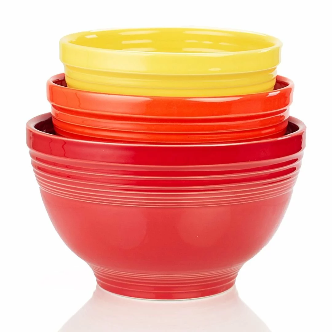 Flood your kitchen in the gorgeous colors of the new Fiesta® Bright Colors 3-Piece Baking Set mixing bowls, featuring prep bowls in Scarlet Red (6 quart), Poppy (4 quart) and Sunflower (3 quart). Proudly made in the USA, these Bright Colors bowls are microwave, oven, freezer and dishwasher safe, and have a 3-year chip replacement warranty. Add to your current Fiesta® or start a collection for your kitchen with the Fiesta® Bright Colors 3-Piece Baking Set and join the legions of Fiesta® fans who love this iconic American brand.