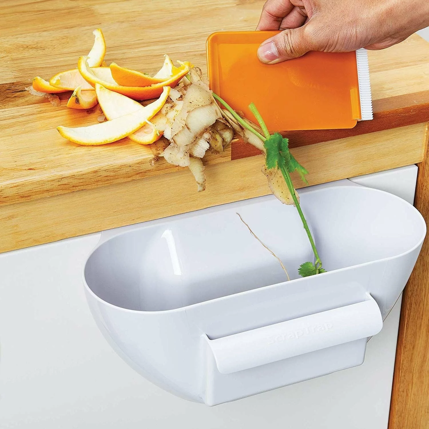 More than just some necessary cleaning accessory! Before the White Scrap Trap Prep Bowl by Fox Run, cleaning off countertop messes was a matter of gathering scraps by hand or brushing them directly into the trash can or onto the floor to be swept up now or later. Place the white plastic bowl directly under the counter or over a drawer or door, and then, simply go about directing the mess in the right direction with the included brush for quick, easy cleanup. After that, carry the 2-quart bowl over to the trash can for simple disposal. It doesn’t get much easier than that really. In the process, countertop space is given plenty of room for you to place kitchen gadgets, dishes, and other important stuff. Strapped for time? Well, save time cleaning up yesterday’s scraps before cooking up today’s morsels with the Fox Run White Scrap Trap Prep Bowl.