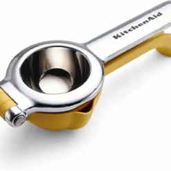 Preparing fresh fruit has never been easier than with the No Mess No Stress Yellow Citrus Press from KitchenAid. This handheld press is designed with an internal hopper and strainer, so you don’t spill excess juice while pressing your lemons and limes. The side of the press features an integrated spout to easily add lemon juice into your recipes. The flat base is designed so that your press will sit securely on the countertop and reduces the chances of making a mess. Enjoy fresh fruit without the struggle, get the KitchenAid No Mess No Stress Yellow Citrus Press today!