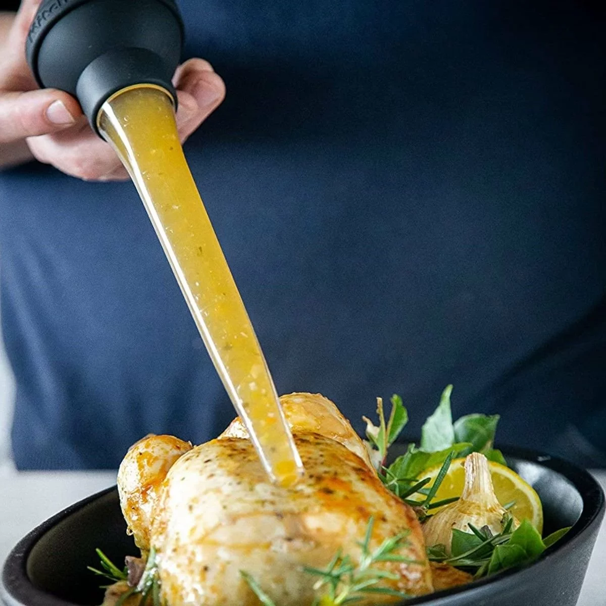 This baster’s bulb is made of soft but durable silicone that’s highly flexible, allowing for maximum suction while in use. This baster is also large enough to have a high capacity for broths and sauces, so you get generous and quick basting on whatever you’re cooking up! The tube of the baster is made of heat-resistant plastic, so you can baste with hot liquids without any worry of damage. And when you’re done making those world-famous, basted recipes, this baster is completely dishwasher safe, making cleanup a breeze!