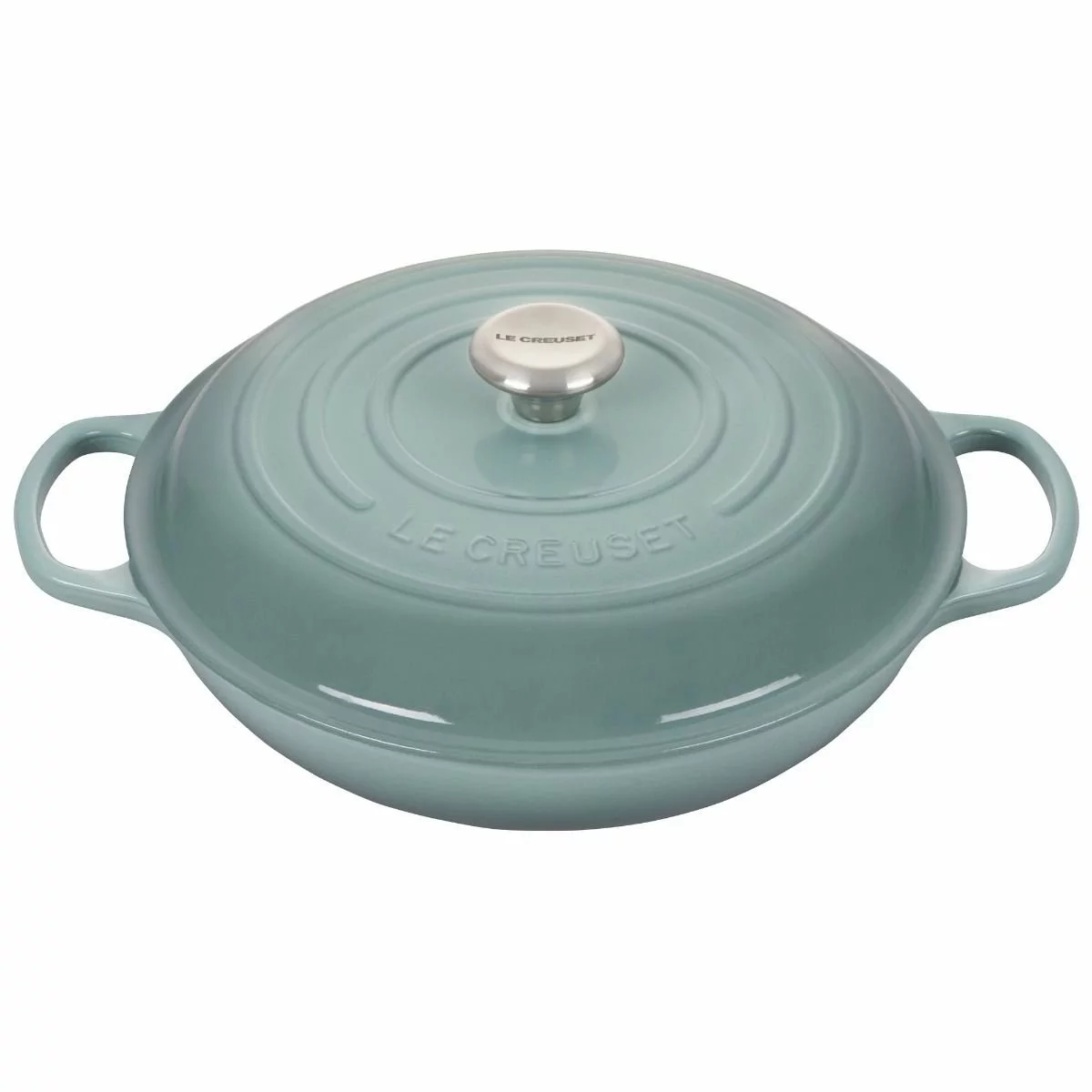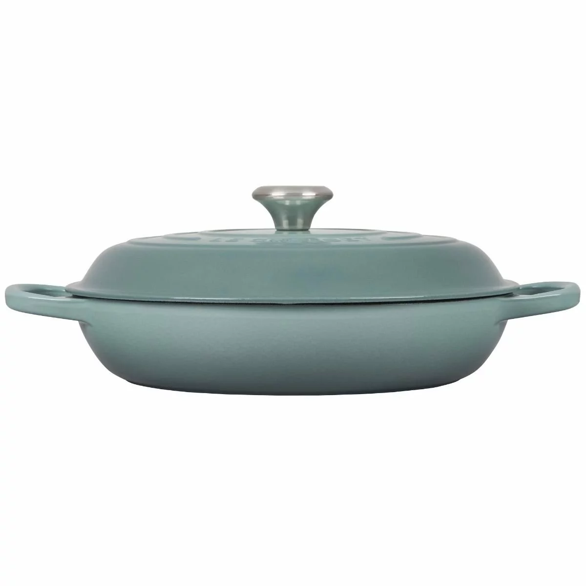 Le Creuset 3.5 Qt. Signature Enamel Cast Iron Braiser (Sea Salt) Features: