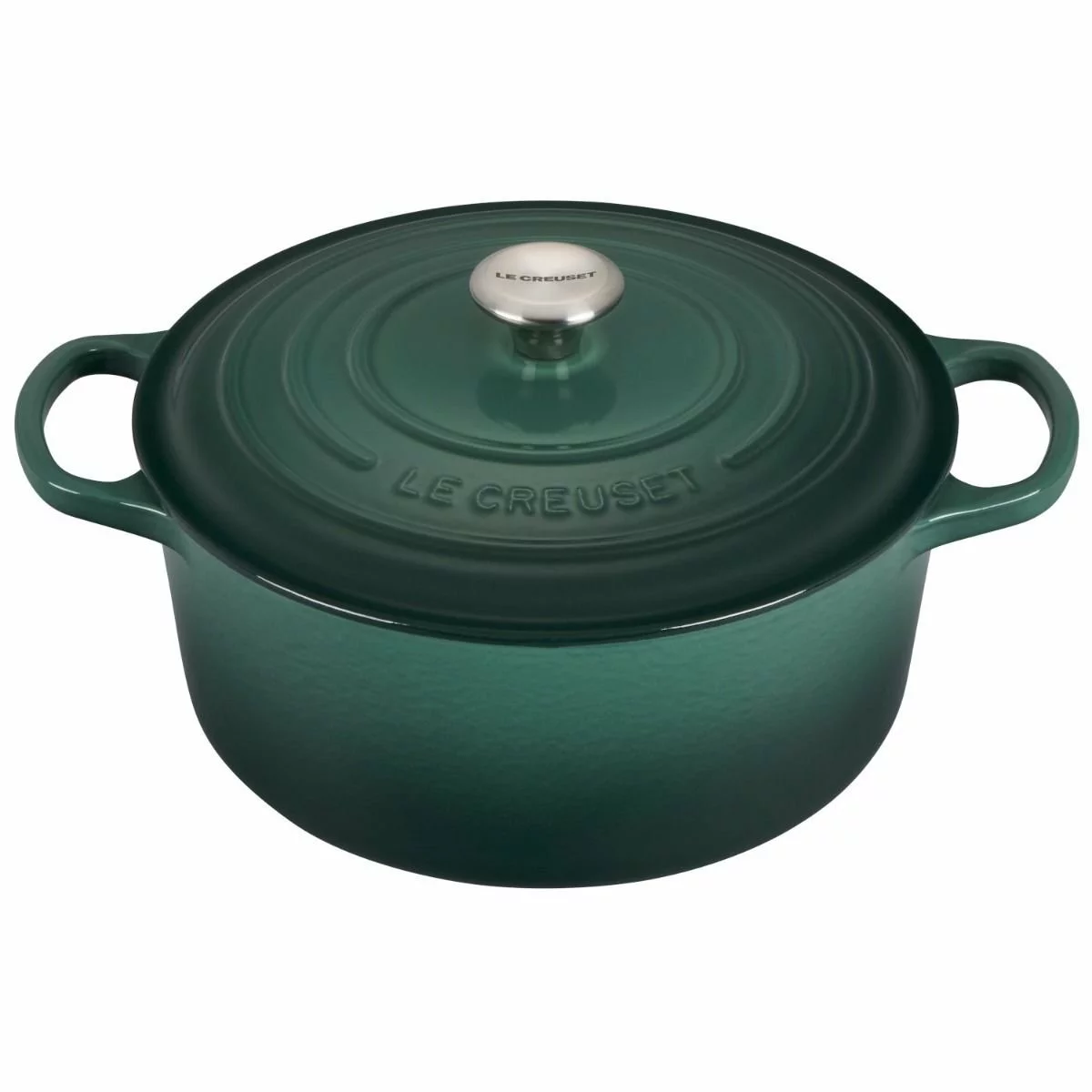 Le Creuset 4.5 Qt. Round Signature Cast Iron French Oven with Stainless Steel Knob (Artichaut) Features: