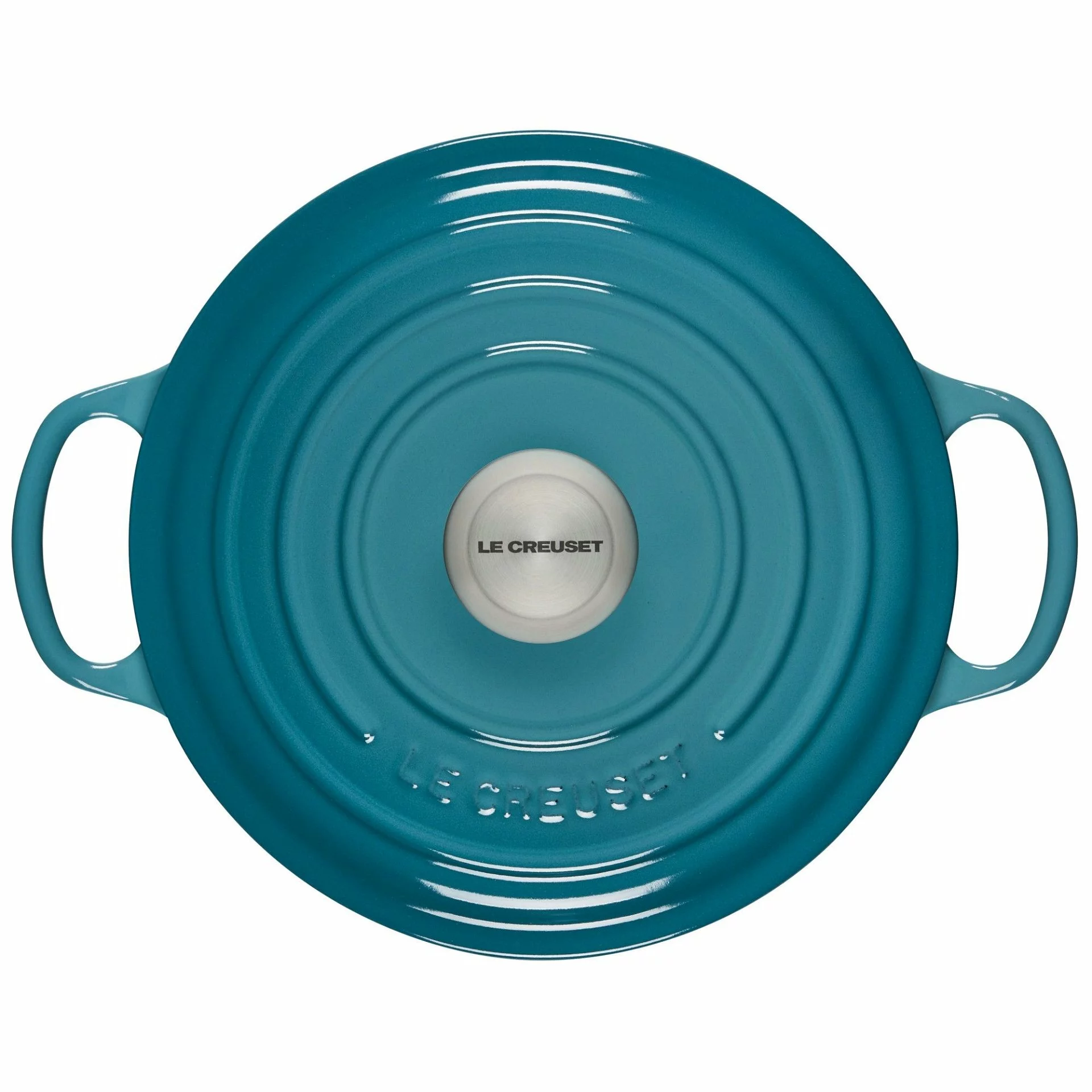 Le Creuset 4.5 Qt. Round Signature Dutch Oven with Stainless Steel Knob (Caribbean Blue) Features: