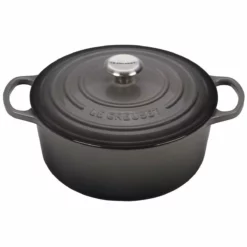 The 5.5qt Le Creuset Cast Iron Dutch Oven is made of oven safe enameled cast iron offered in a variety of colors. This Oyster Grey enameled Le Creuset Signature Round French Oven has a clean and classic style all its own. Like all Le Creuset enameled cast iron cookware it is recommended that you hand wash, but this french oven is dishwasher safe making clean up easy.