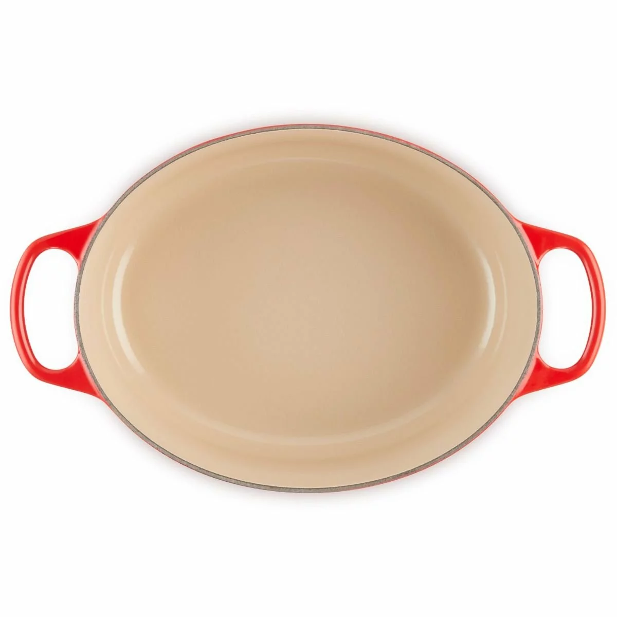 Le Creuset 5 Qt. Oval Signature Dutch Oven with Stainless Steel Knob (Cerise/Cherry Red) Features: