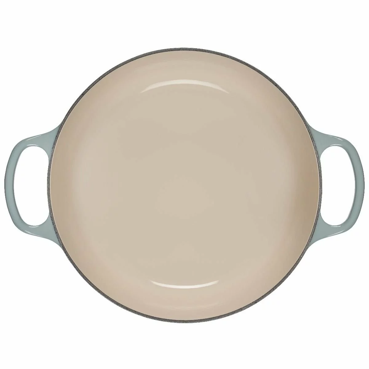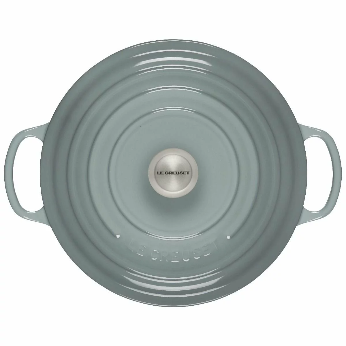 Le Creuset 9 Qt. Round Signature Dutch Oven with Stainless Steel Knob (Sea Salt) Features: