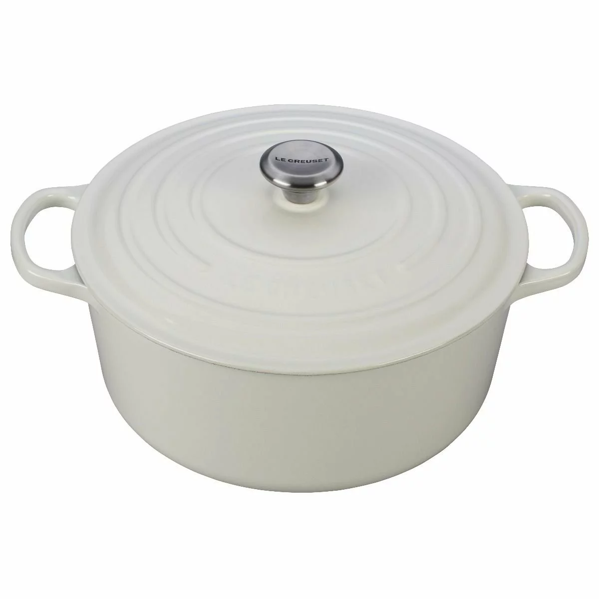 This white enameled French Oven is made in the famous Fresnoy-Le-Grand foundry, one at a time and by hand. The Le Creuset brand name has been crafted by the quality long lasting design of the French Ovens. The round French oven has been in most homes, restaurants around the world for generations. The quality of this French styled Dutch oven comes in many stylish colors and can be used for a wide variety of enduring jobs. The Le Creuset Dutch Oven come in sizes from 1 quart to 13 ¼ quarts. Le Creuset round ovens are made from the highest quality cast iron and give you the benefit of having enamel coated cast iron for cooking, and as a stylish serving dish. Le Creuset French Ovens & Cocottes are a great tool to have around the holidays, family gatherings, or occasional cooking.
