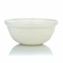 Bring the effortless charm of lush countryside fields indoors with the Mason Cash In The Meadow Collection S12 Mixing Bowl in Rose. Made with Mason Cash’s time-honored stoneware that is resistant to chipping and cracking, this mixing bowl will be a durably elegant addition to your everyday baking preparation. With a 4.25 Quart capacity, the S12 mixing bowl is ideal for preparing large batches of dough or batter or for serving dishes family style. The clean cream-colored finish is highlighted with an embossed Rose design that lines the bowl’s perimeter, while the classic scalloped rim offers maximum grip – making for a practical, elegant piece that will let mixing tasks go smoother. Allow your baking tasks to bloom with style and order the Mason Cash In The Meadow Mixing Bowl today!