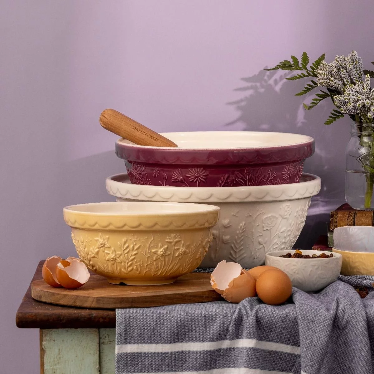 - To avoid cracking & chipping, Mason Cash mixing bowls are NOT recommended for use with electric hand mixers or metal utensils