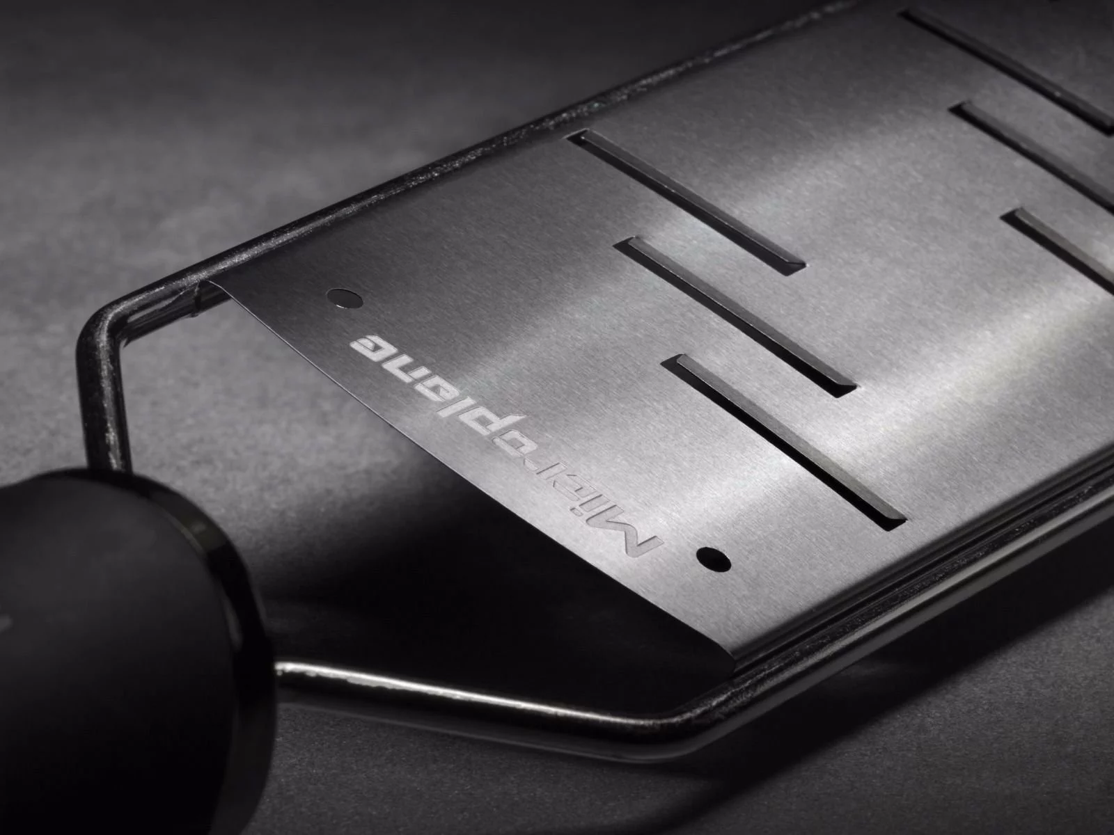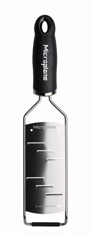 Are you looking for the perfect tool for shaving chocolate, cheese, and butter, and making thin slices of garlic and ginger without needing any “elbow grease” to get the job done? Microplane’s Gourmet Series Large Shaver is the one you’re looking for! The original company to bring the woodworking tool out of the garage and into the kitchen, Microplane’s ultra-sharp blades are photo-etched instead of stamped like most of the competition, so while other graters you’ve used may have seemed dull, a Microplane blade will never disappoint. The graters in the Gourmet Series are paddle graters, used by chefs and gourmands everywhere. A non-slip base keeps the grater safely in place, while a soft-touch handle makes it comfortable to use. Able to grate any food easily, you’ll be reaching for this large shaver time and again to make flakes of parmesan for salad, to shave cold butter onto rolls when you forgot to take it out of the fridge before dinner, to shave off chocolate for desserts, and more!