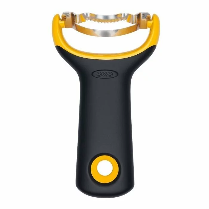 Stripping the kernels from corn cobs with a knife alone is risky business! This Corn Peeler in yellow by OXO makes it effortless. With super sharp Japanese stainless steel blades this palm peeler for corn glides down the cob removing kernels in whole strips. This corn cutter is rust resistant for longevity. OXO makes clean up easy so this palm corn peeler is dishwasher safe. With an ergonomic non-slip grip you will have a firm handle on the task. Try this handy palm corm stripper and you’ll soon find it a breeze to achieve cob free kernels of fresh corn.