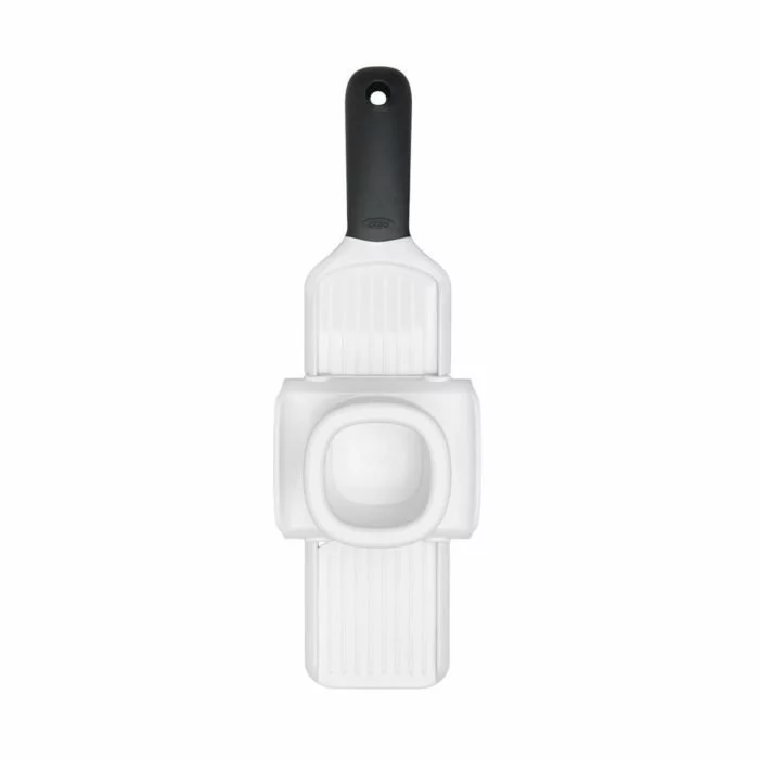 If you love to use fresh garlic, the OXO Garlic Slicer is a must-have addition to your kitchen. This manual slicer features a comfortable handle for easier use. To make the Garlic Slicer safer, the garlic is set inside a food chamber, so your fingers stay clear of the stainless steel blade. The blade is bi-directional, so you can quickly slice through cloves of garlic and turn them into thin, even slices in moments. When you’re done preparing fresh garlic, simply place the garlic slicer into the dishwasher! Add the Garlic Slicer from OXO to your kitchen today!