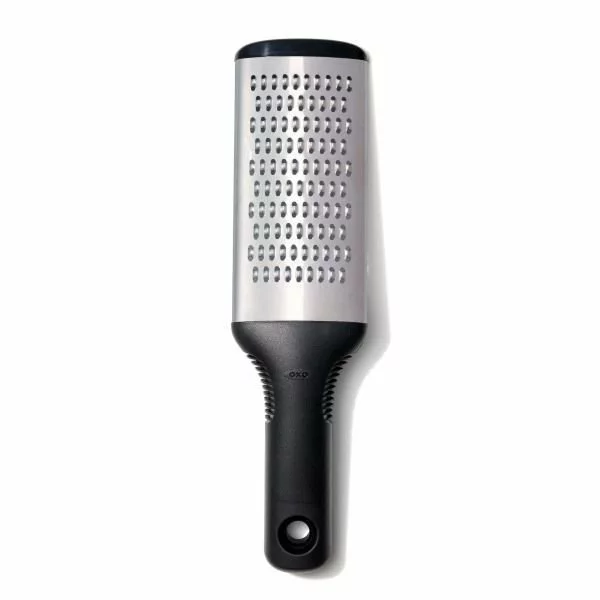Don’t let the thought of grating keep you from enjoying fresh cheese with your next meal. The OXO Grater is designed to make grating and zesting comfortable and easy for anyone. This fine grater is perfect for preparing cheeses and zesting fruits for any number of recipes. With a non-slip, comfortable handle that absorbs the pressure while you work, this grater is more comfortable and precise than traditional designs. The stainless steel construction ensures this grater will last for years to come, so get your OXO Grater today and enjoy grating and zesting your ingredients!