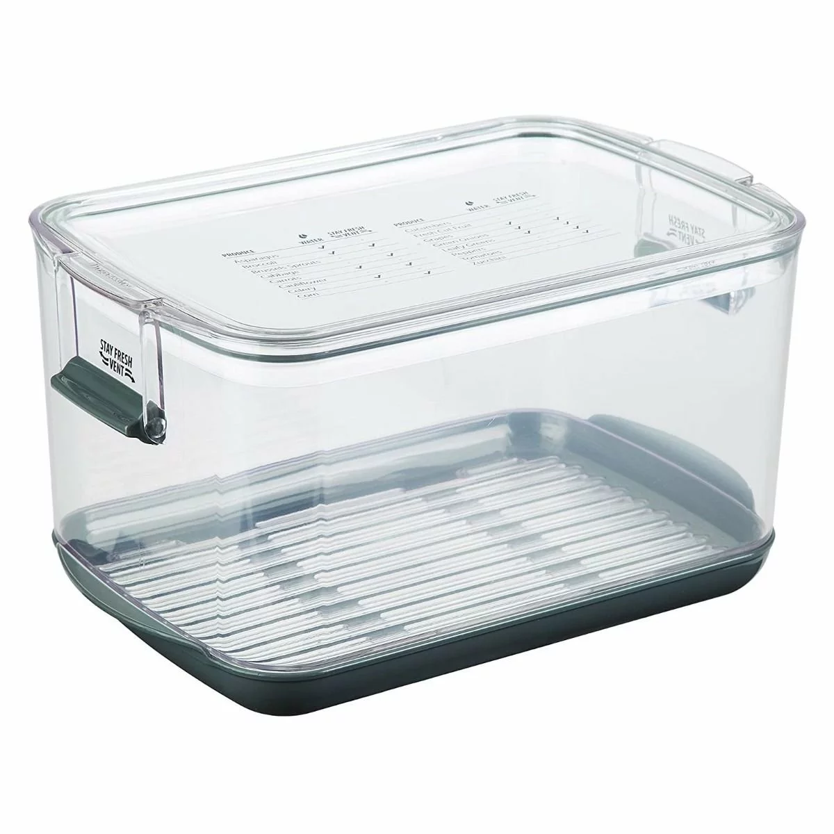 - Stay fresh vent tab on each side, allows air to flow through the container