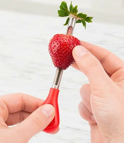 Love strawberries but not the time it takes to remove the hull? Tovolo has solved this problem with their new Strawberry Huller! This handy little kitchen helper features an easy-grip BPA-free handle and hallow, open-ended straw. Simply push the extra slim straw in from the bottom of the strawberry and pop out the hull, with minimal waste! Enjoy fresh strawberry shortcake, delicious homemade ice cream with fresh berries or even garnish a decadent chocolate cake easily and quickly with Tovolo’s Strawberry Huller!