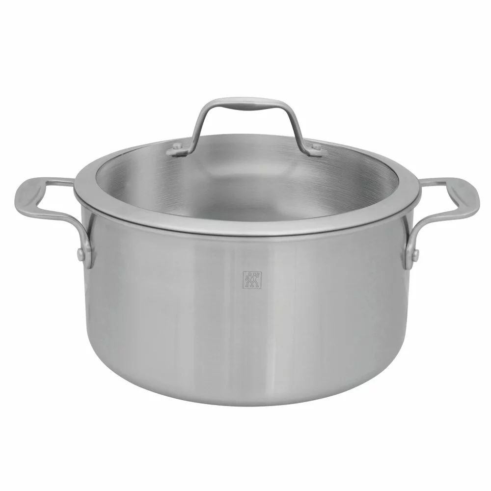 The Zwilling Spirit Dutch Oven 6qt w/Lid Polished features beautiful polished stainless steel and tri-ply construction which has a thick aluminum core that expertly conducts & distributes heat. The sprit line is dishwasher-safe and features a lifetime warranty, everything you need to cook like a professional chef for breakfast, lunch and dinner. Thanks to the quality craftmenship of Zwilling J.A. Henckel this will be a Dutch Oven you will have in your kitchen for many years to come.